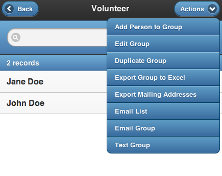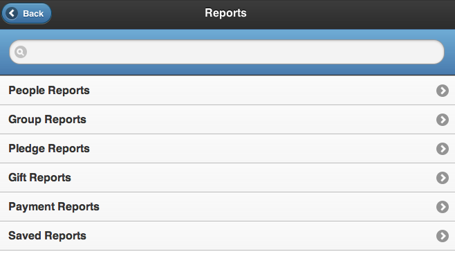 Create simple reports on people, groups, payments, pledges and gifts. Users can save reports to run or edit later, export to Excel, add to groups, text or email.
