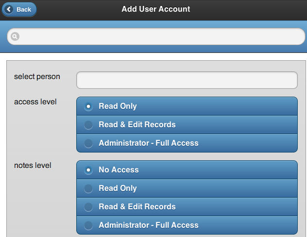Empower your volunteers with access to everyone connected to the ministry. Easily setup and manage user accounts with custom access permissions on notes, payments, pledges.